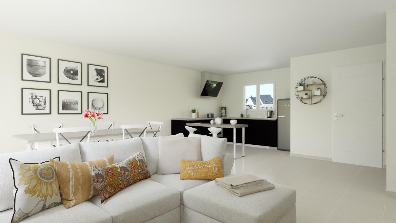 • Pièce de vie entièrement ouverte : un espace convivial alliant salon, cuisine et coin repas, baigné de lumière naturelle.