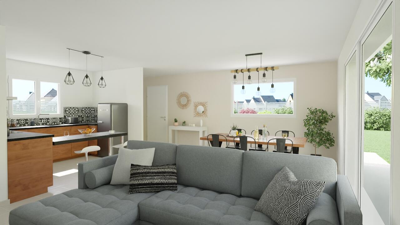 • Cuisine, salon et salle à manger en un seul volume lumineux, idéal pour les moments en famille ou entre amis.