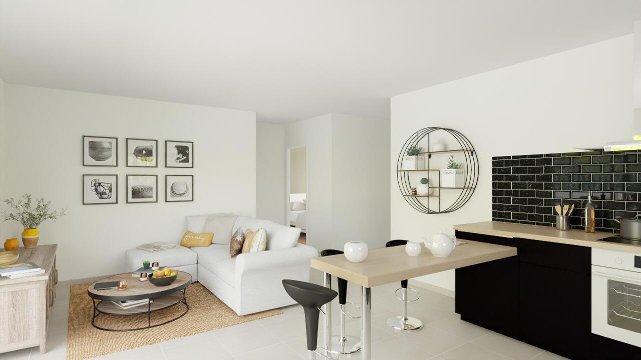 • Cuisine ouverte sur le séjour : Un espace de vie convivial et lumineux.