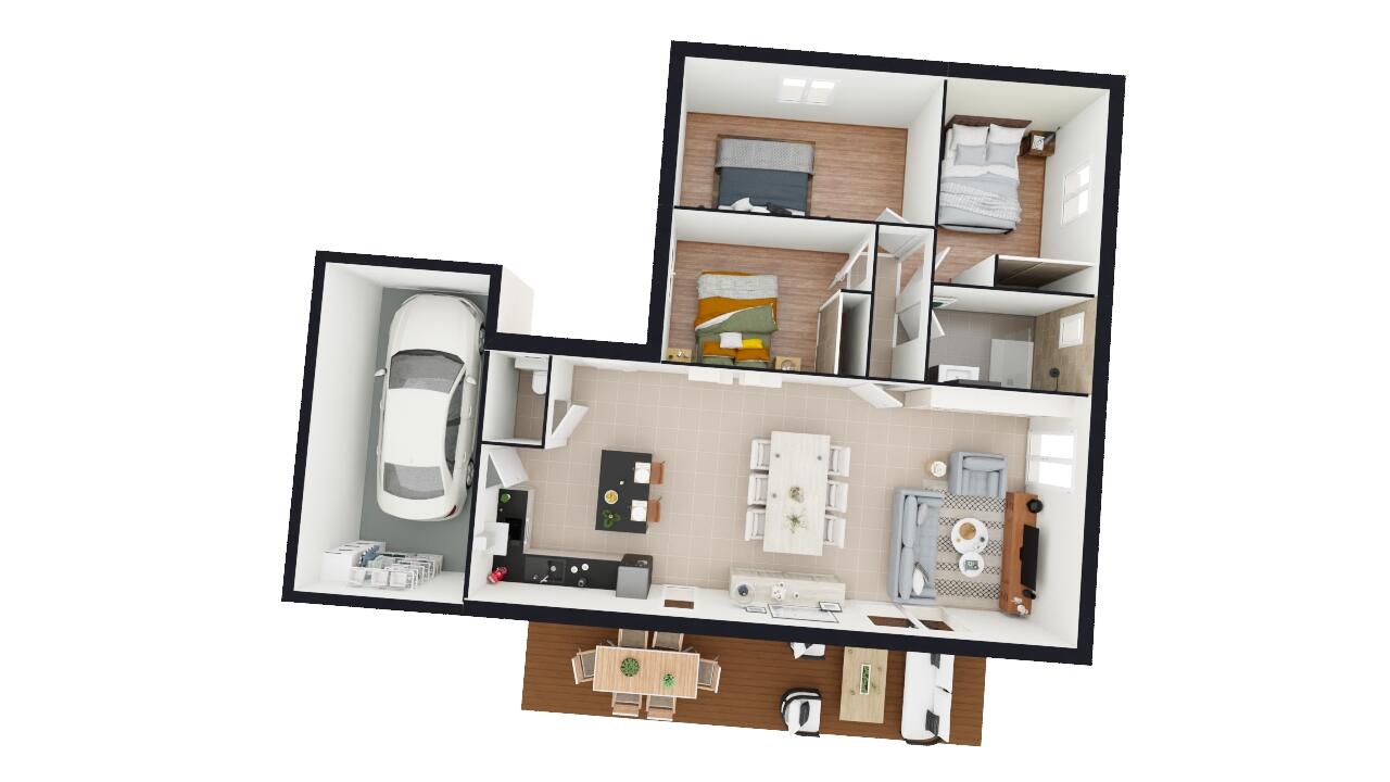Découvrez cette maison en ossature bois à construire. Idéalement pensée, cette maison plain-pied offre une double isolation intérieure et extérieure pour une faible consommation énergétique toute l’année.