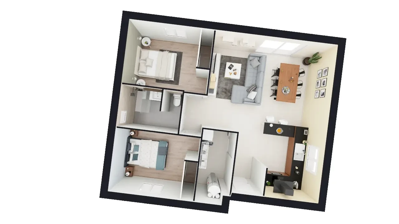 Cette maison vous offre 2 belles chambres, ainsi qu’une pièce de vie entièrement ouverte composée d’un coin salon et d’un espace cuisine-repas, le tout baigné de lumière grâce à plusieurs ouvertures.