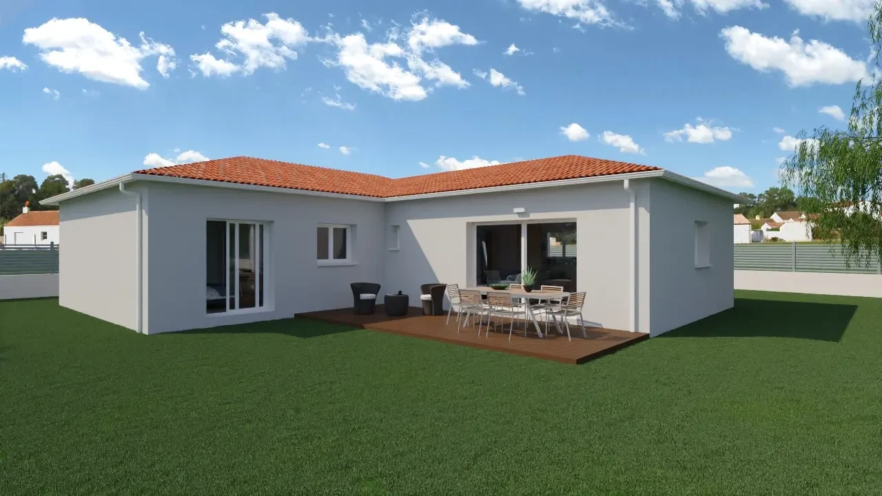 ✅ Construction en ossature bois : isolation optimale, écoresponsable et rapide à construire ✅ Agencement en L : optimisation de l’espace et intimité préservée