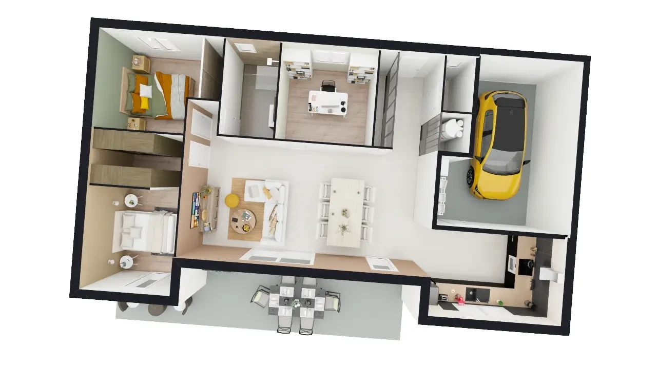 Découvrez cette maison en ossature bois, alliant confort et modernité . Cette maison offre des espaces de vie optimisés et une entrée pratique donnant directement sur le séjour lumineux avec cuisine ouverte, parfaite pour les moments conviviaux.