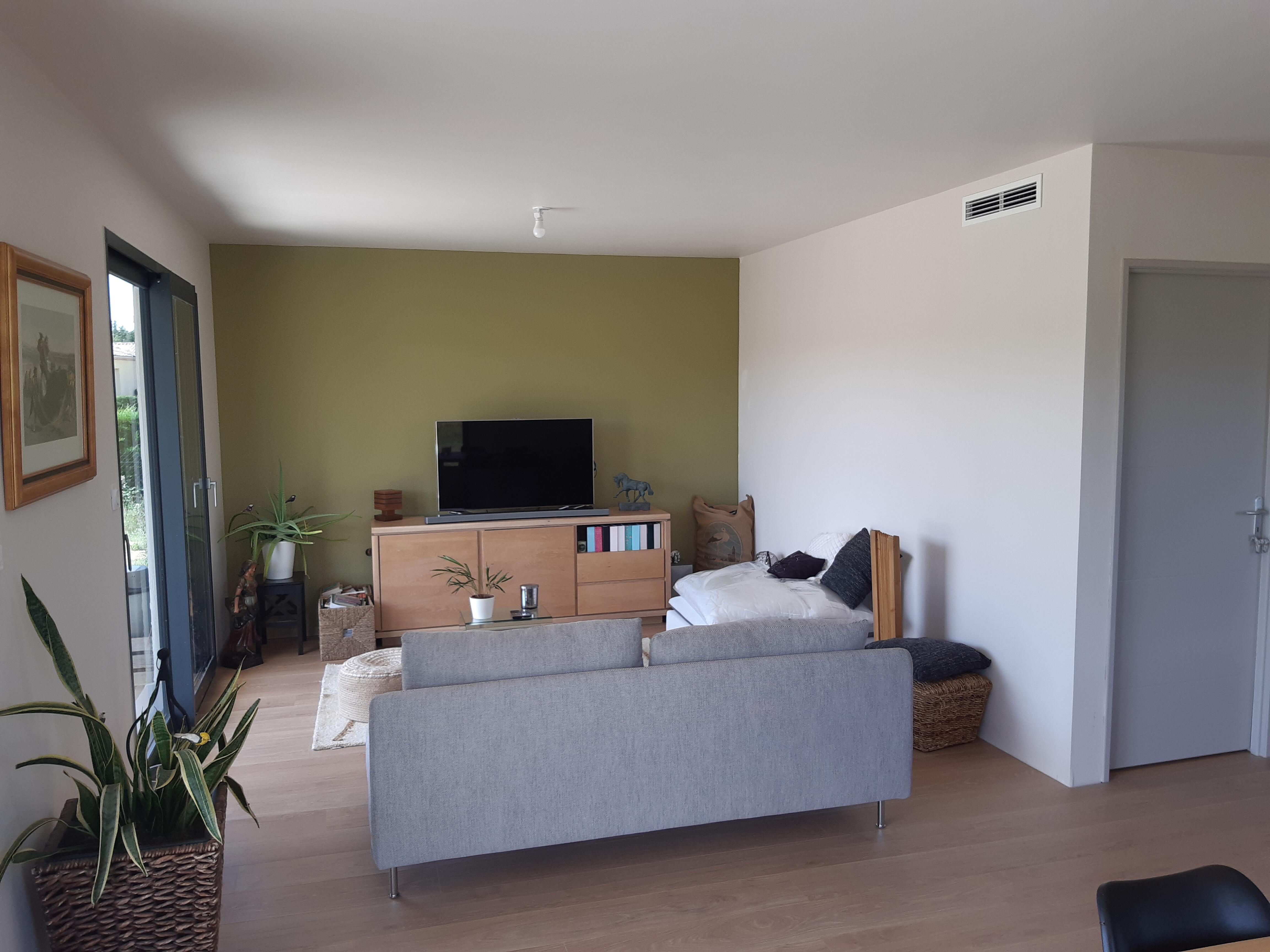 Un bureau vient compléter l'espace jour, apportant une solution pratique pour le télétravail ou un espace dédié.