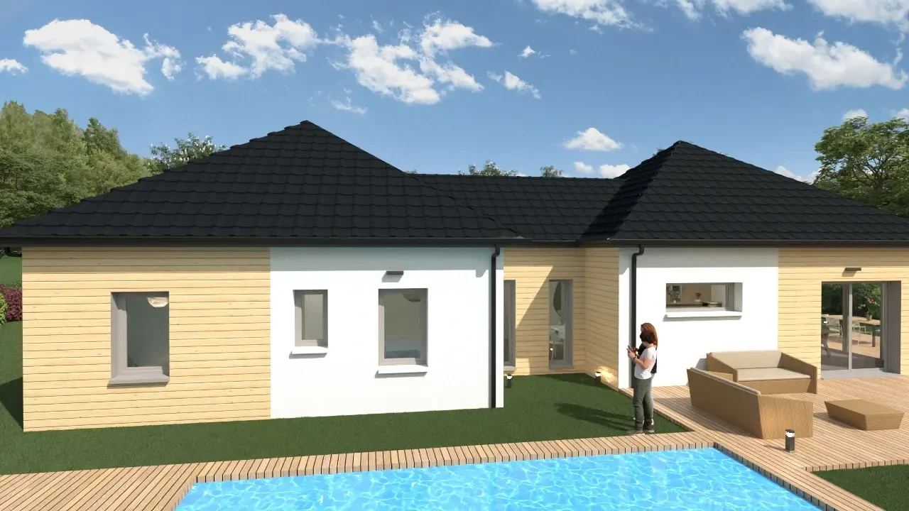 Avec ses lignes étirées, Oria se compose de 2 blocs, au centre desquels on trouve l’entrée, abritée sous un porche. Cette maison au design très moderne s'assortit aussi bien avec un toit traditionnel qu’un toit contemporain. Oria peut s’habiller de façades foncées et bois. Une palette de couleur qui retranscrit le modernisme de la construction de maison ossature bois.