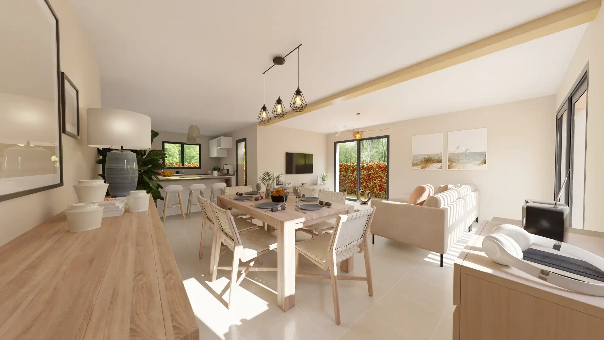 🛋️ Grande pièce de vie conviviale avec cuisine ouverte, parfaite pour partager des moments en famille ou entre amis