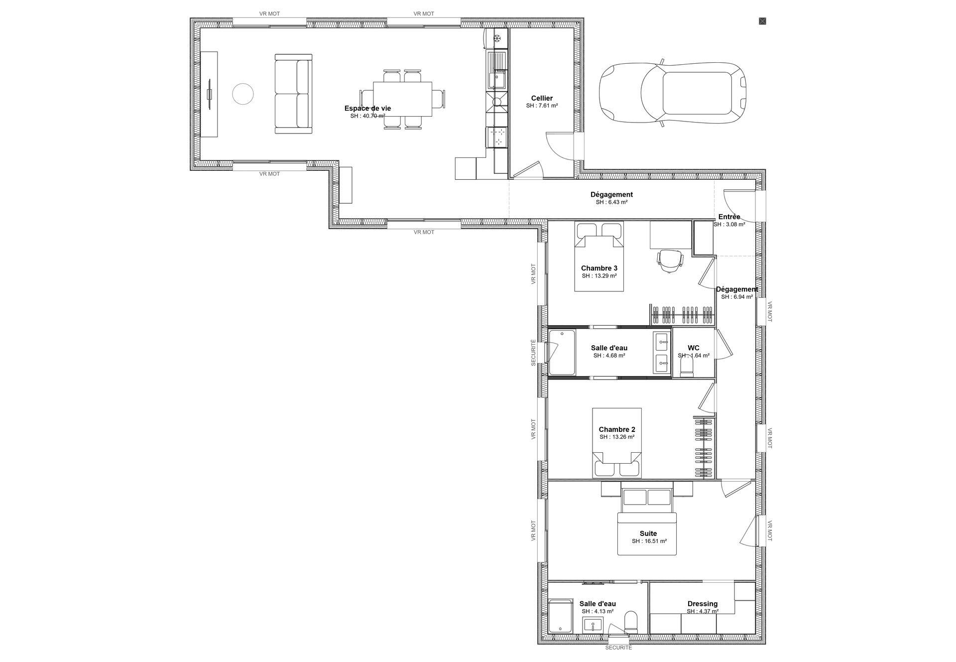 Un plan bien pensé, où chaque mètre carré est exploité pour allier confort, fonctionnalité et esthétisme.