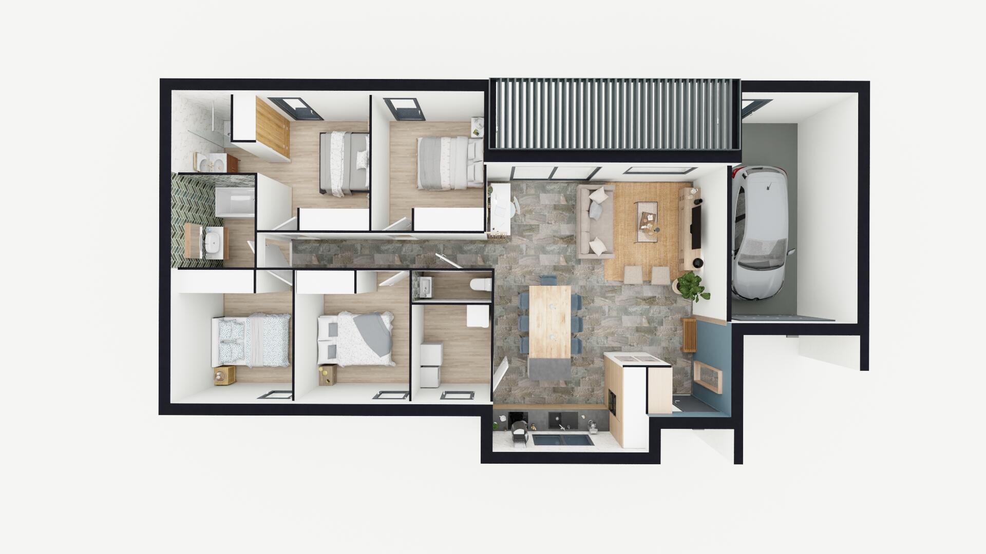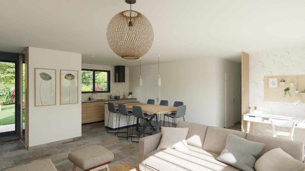 Maisons Naturéa Cahors vous propose de bâtir votre futur projet de vie sur la charmante commune de Concorès. Cette maison, à l'esthétique soignée mêlant enduit et finitions bois, offre un confort de vie inégalé au cœur du Lot.