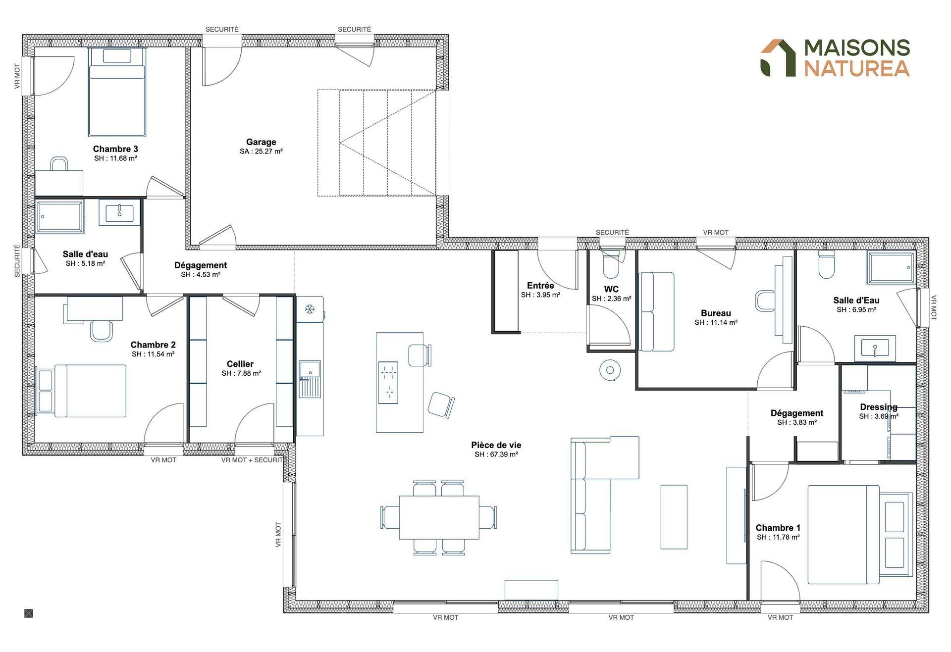 Nous vous proposons un modèle de plain-pied de 145 m², conçu pour répondre aux exigences d’aujourd’hui… et de demain !