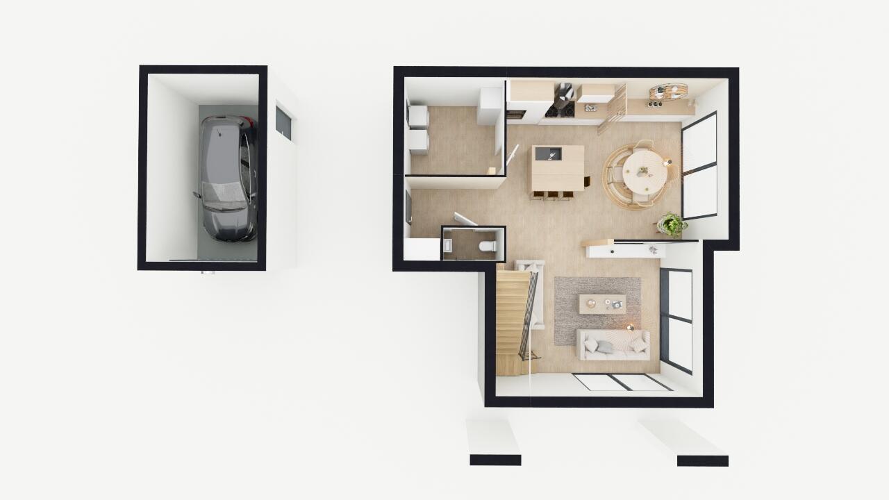 𝐀𝐮 𝐫𝐞𝐳-𝐝𝐞-𝐜𝐡𝐚𝐮𝐬𝐬𝐞́𝐞 : L'entrée avec hall et WC dessert un espace de vie lumineux. Il se compose d'un salon cosy et d'une vaste pièce de vie de 36 m² (comprenant cuisine et salle à manger). Les larges baies vitrées ouvrent sur le jardin et la vue. Un cellier de 7 m² et un garage de 15 m² , accessibles via un porche couvert complètent ce niveau.