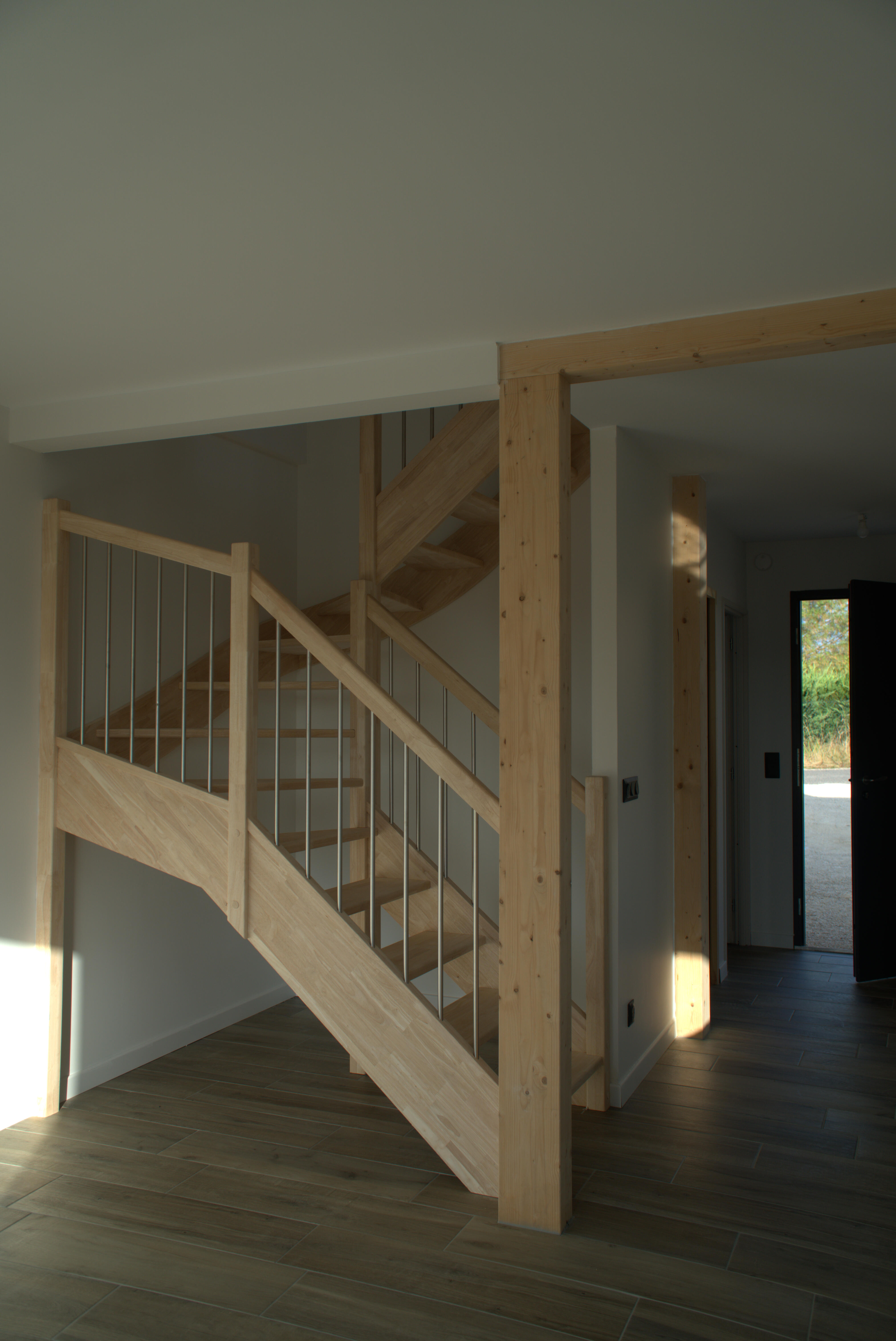 Au RDC, une pièce de vie lumineuse s'ouvre sur un vide sur séjour pour un volumeux généreux. Une chambre parentale complète ce niveau.