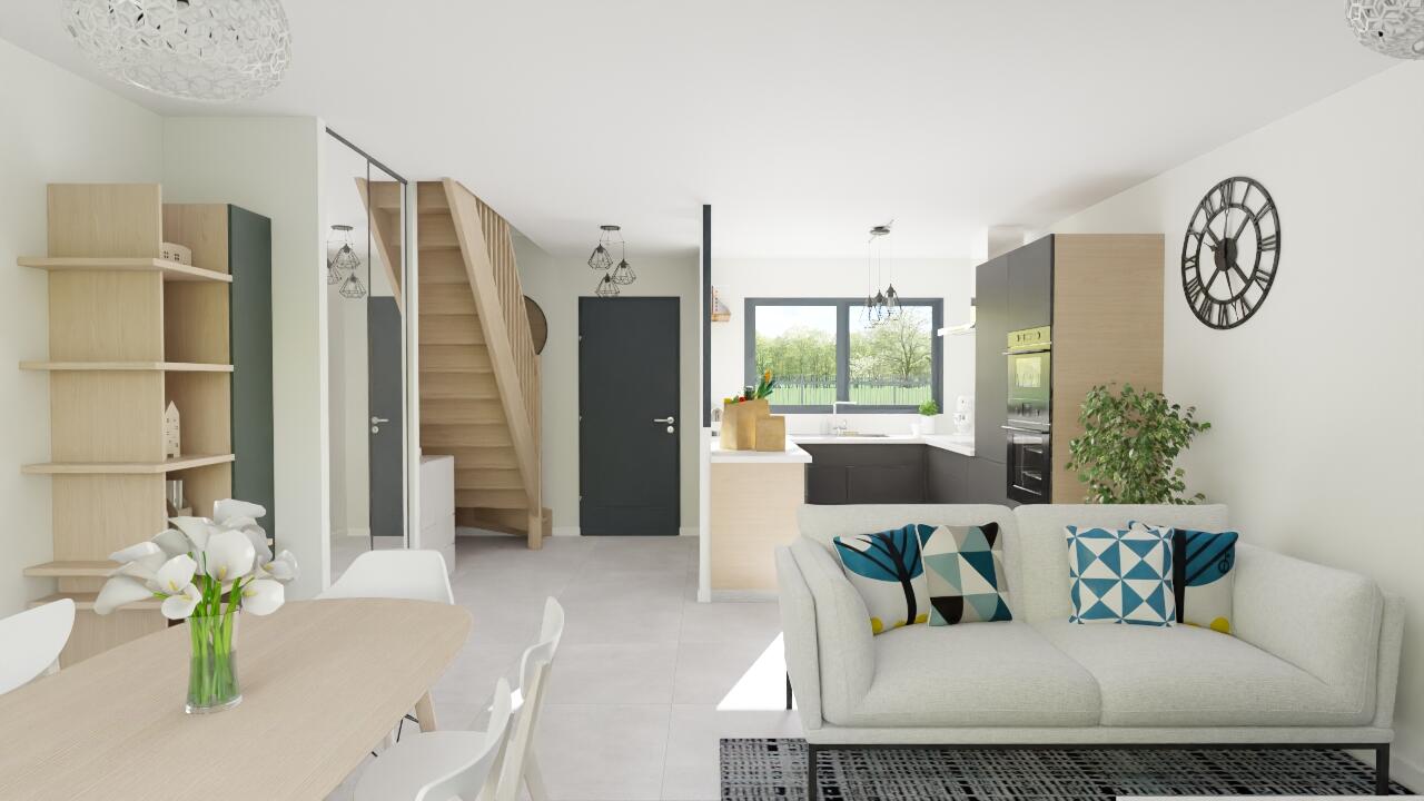 Chaque détail a été pensé pour allier fonctionnalité et bien-être : WC suspendus, baies vitrées coulissantes en aluminium, volets roulants motorisés à coffre invisible, gestion domotique, double isolation thermique et vide sanitaire isolé. Entièrement personnalisable, cette maison répond aux attentes d’une vie de famille moderne et confortable.