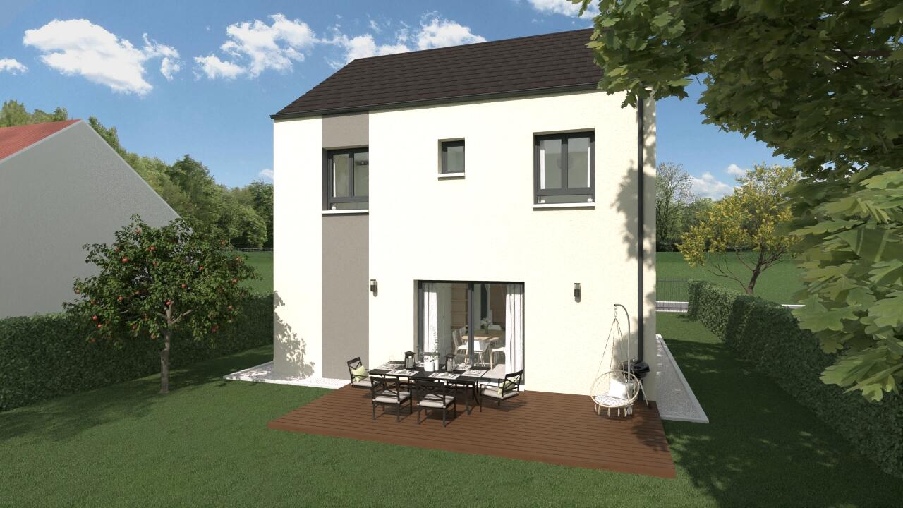 Découvrez ce modèle de maison à étage en ossature bois avec garage intégré de 14 m². Cette maison est parfaite pour les petits terrains tout en alliant esthétisme et fonctionnalité.