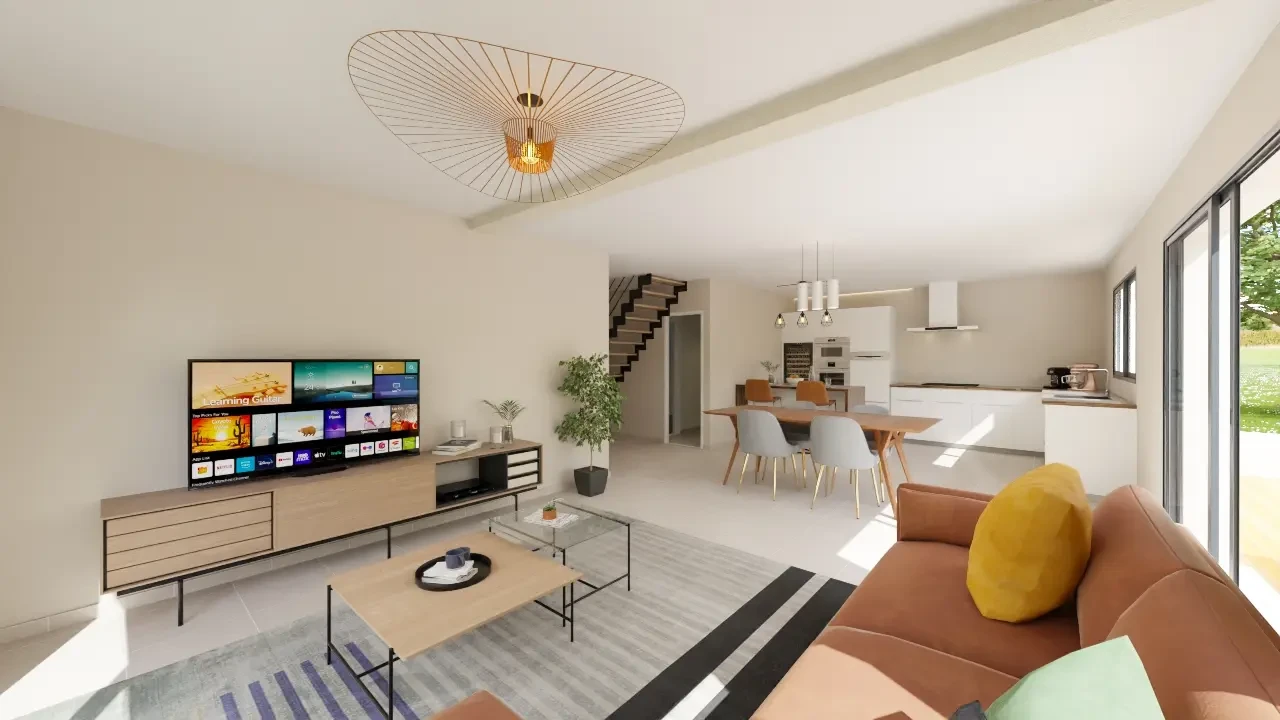 D’une belle pièce à vivre ouverte sur la cuisine et baignée de lumière,