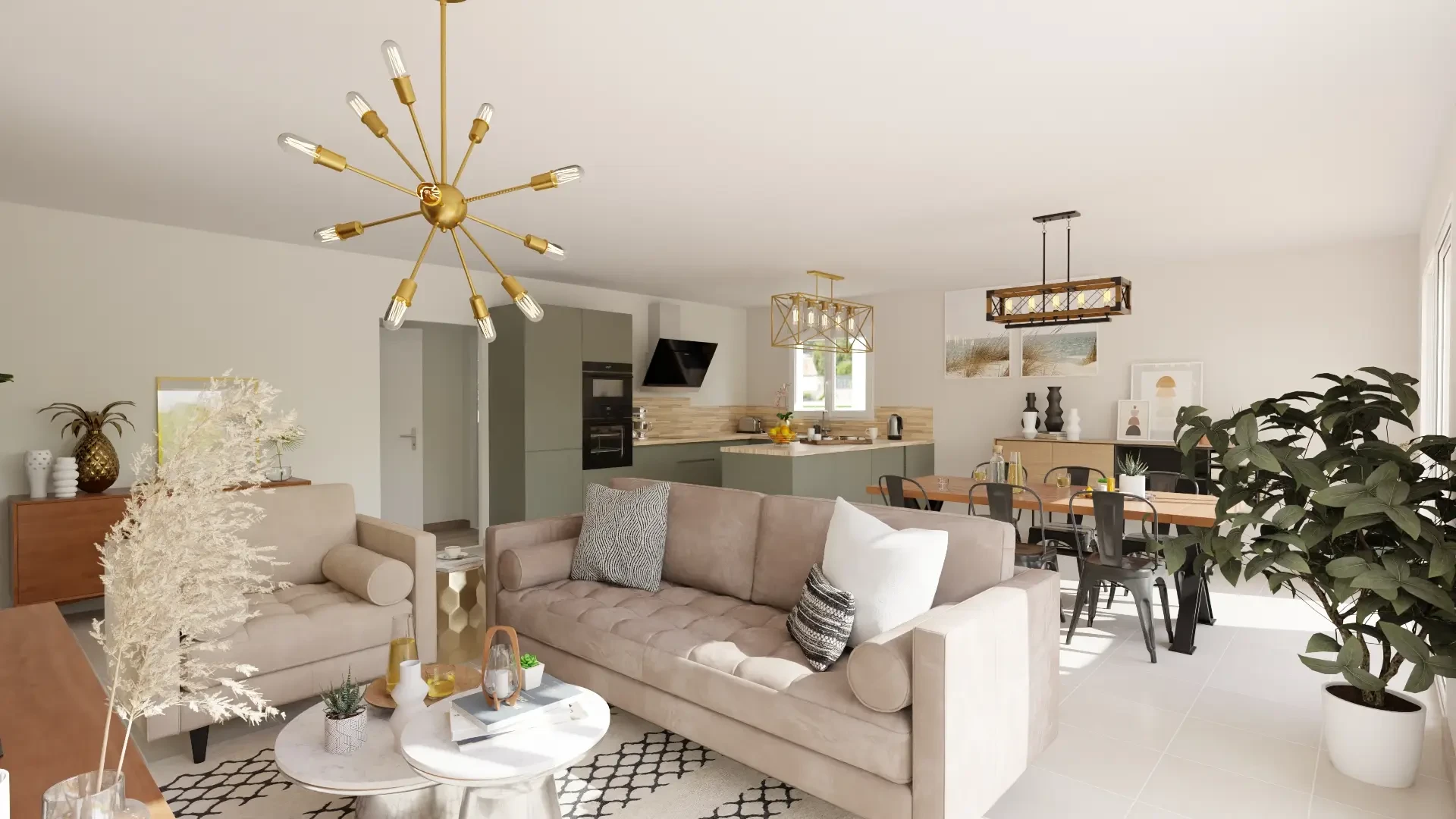 D’une belle pièce à vivre ouverte sur la cuisine et baignée de lumière,