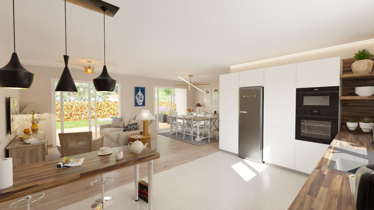 Cette villa de 88m2 bien pensée se compose d'une belle pièce à vivre ouverte sur la cuisine et baignée de lumière, 3 chambres.