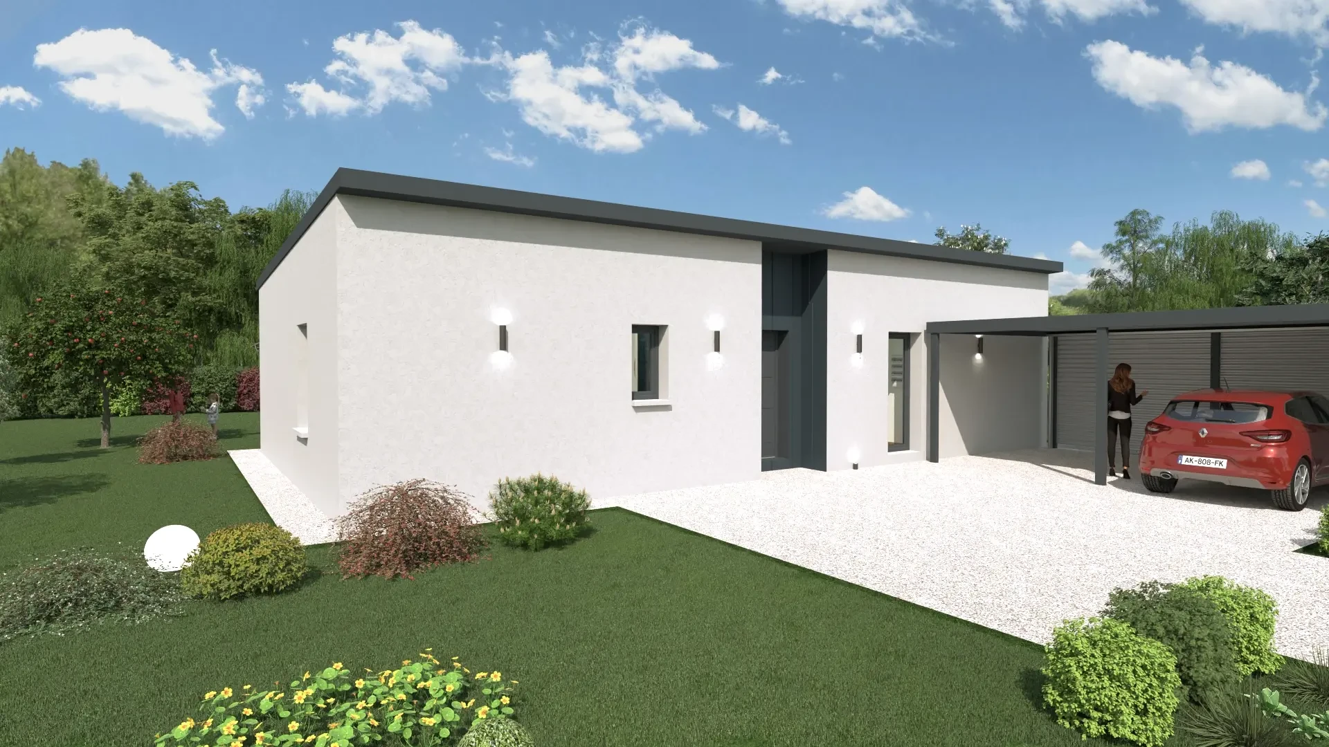 Ce projet est entièrement personnalisable selon vos besoins et vos envies. Il s’inscrit dans une démarche environnementale à faible impact carbone, conforme à la réglementation RE2020, et est proposé dans le cadre d’un contrat de construction de maison individuelle (CCMI), vous garantissant sécurité et sérénité.