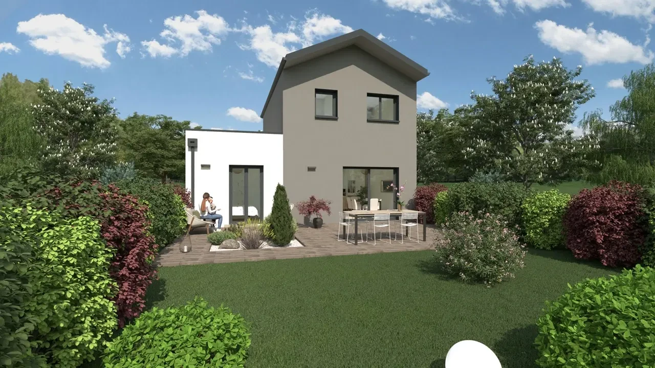 Malgré sa conception optimisée, elle reste spacieuse et confortable. Son garage intégré et ses aménagements extérieurs permettent un agencement harmonieux du terrain.