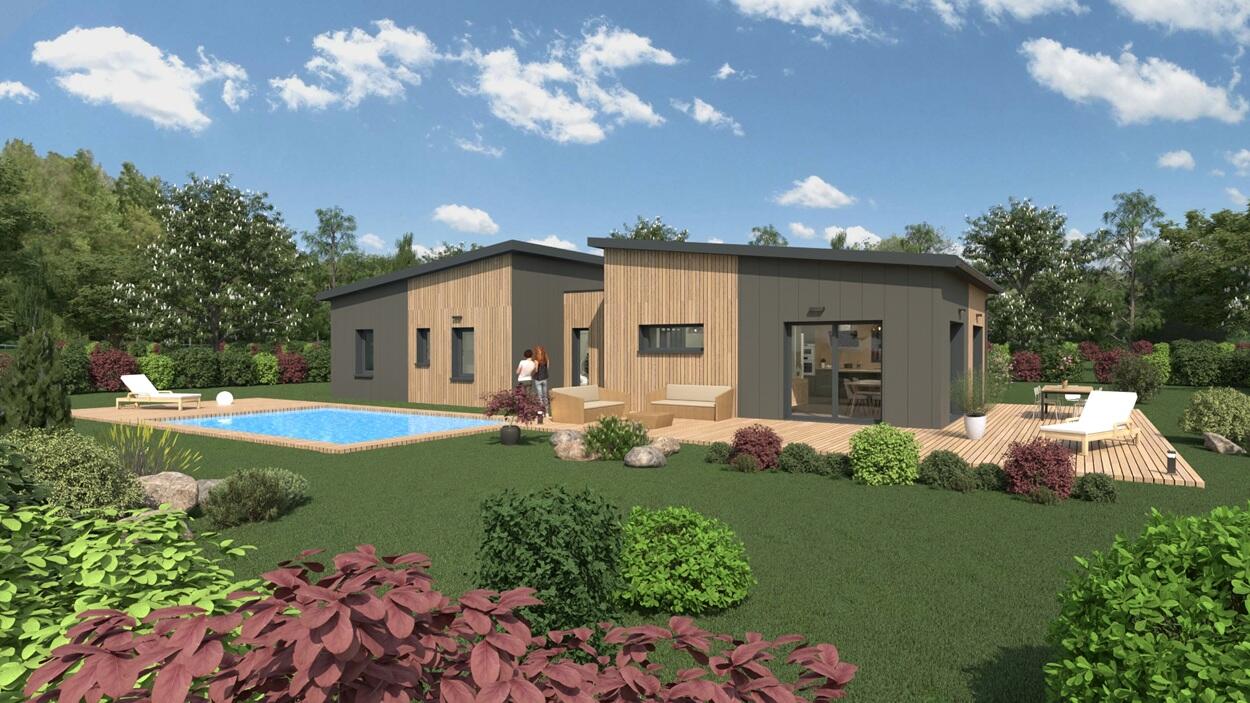Cette maison de plain-pied offre une agréable surface habitable d’environ 127 m², comprenant : 4 chambres dont une suite parentale, une pièce de vie lumineuse d’environ 50 m² , une isolation et un confort exceptionnels grâce à la construction bois et enduit extérieur. Vous avez le choix de toiture : plat, mono pente ou deux pans.