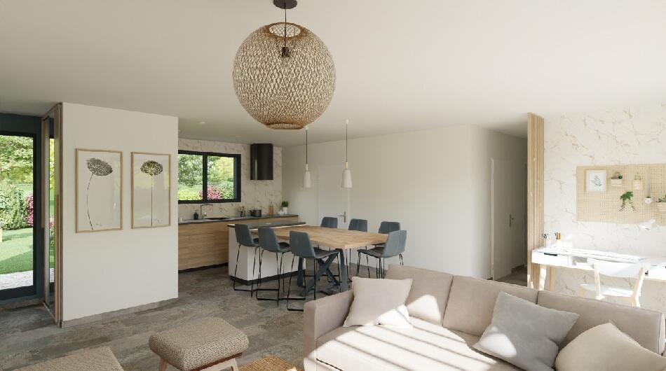Construite en ossature bois par Maisons Naturéa,, elle sera obligatoirement du style traditionnel (imposition du PLU) en toiture 2 pans. Elle s’adapte à vos besoins en quête d’un habitat fonctionnel et bien conçu. Maison écologique, conçue par Maisons NATUREA, spécialiste des maisons individuelles en ossature bois, elle offre une construction respectueuse de l’environnement, durable et d’excellentes performances énergétiques. Nous pouvons la concevoir en ossature bois ou en parpaings ou en briques selon votre budget comme elle se module à vos attentes : d’une surface de 93 à 105 m².