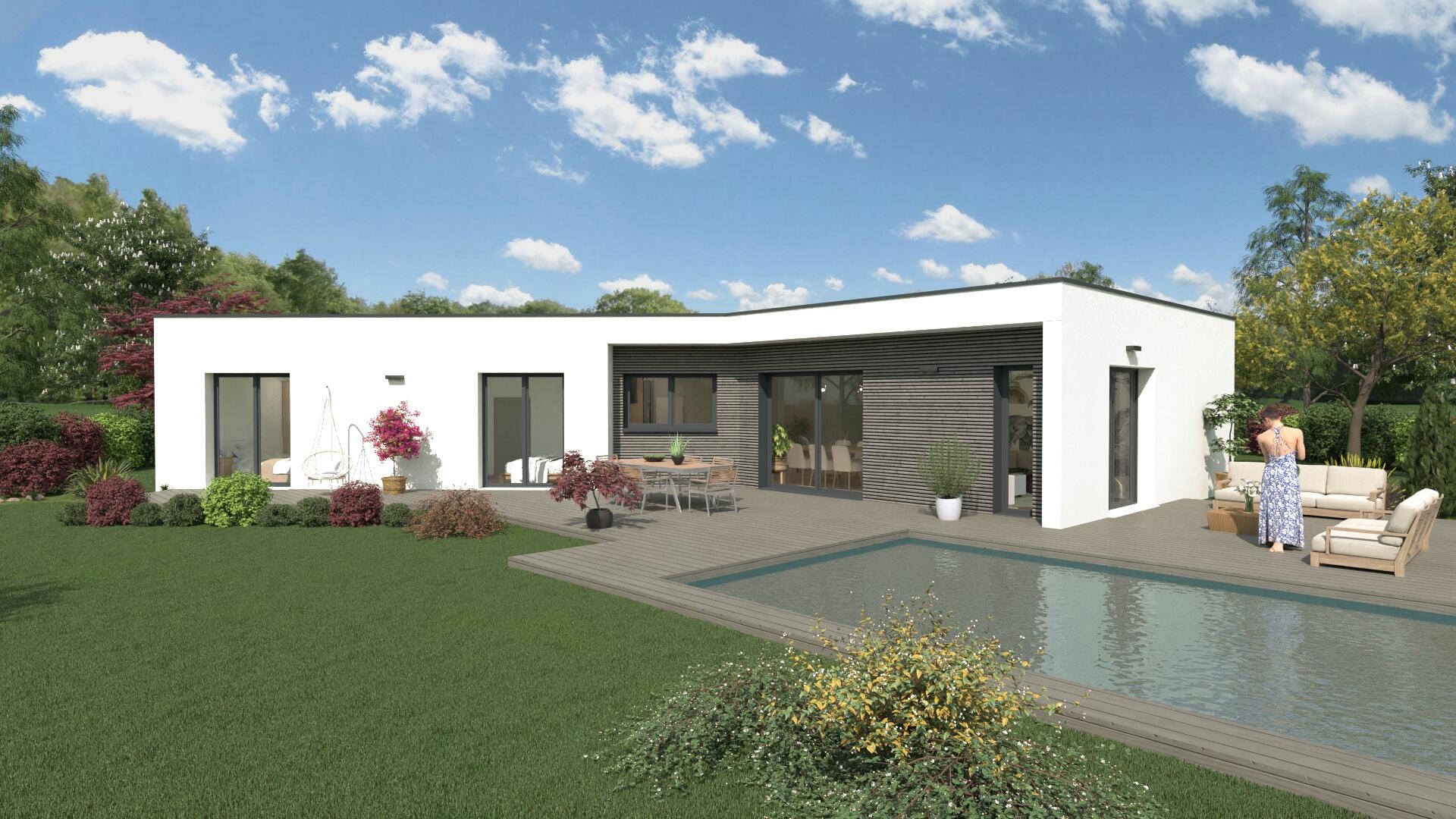 La NOMIA allie élégance et modernité, avec une organisation intérieure claire séparant les espaces jour et nuit. Elle propose un vaste espace de vie d’environ 50 m² et 3 à 4 chambres, garantissant confort et intimité. Le débord de la pièce de vie apporte lumière et ouverture sur l’extérieur, tandis qu’un garage de 21 m² (convertible en pièce à vivre) complète l’ensemble.