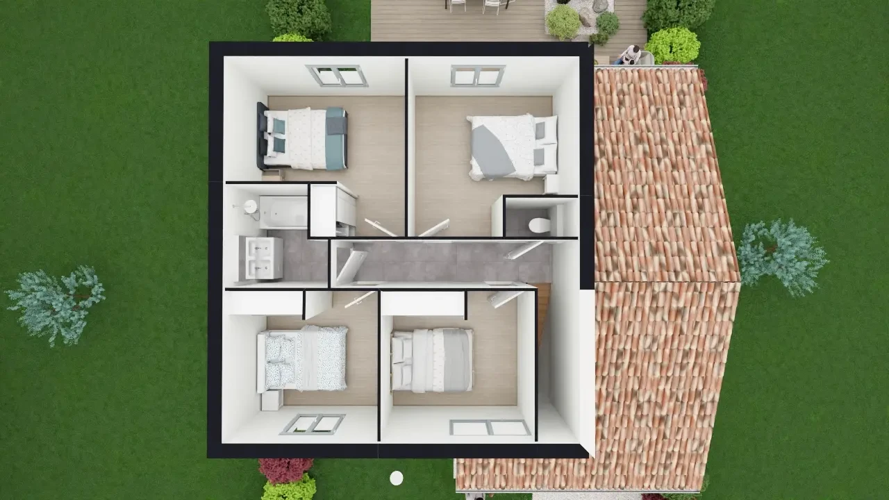 • 4 chambres (environ 10 m² chacune)