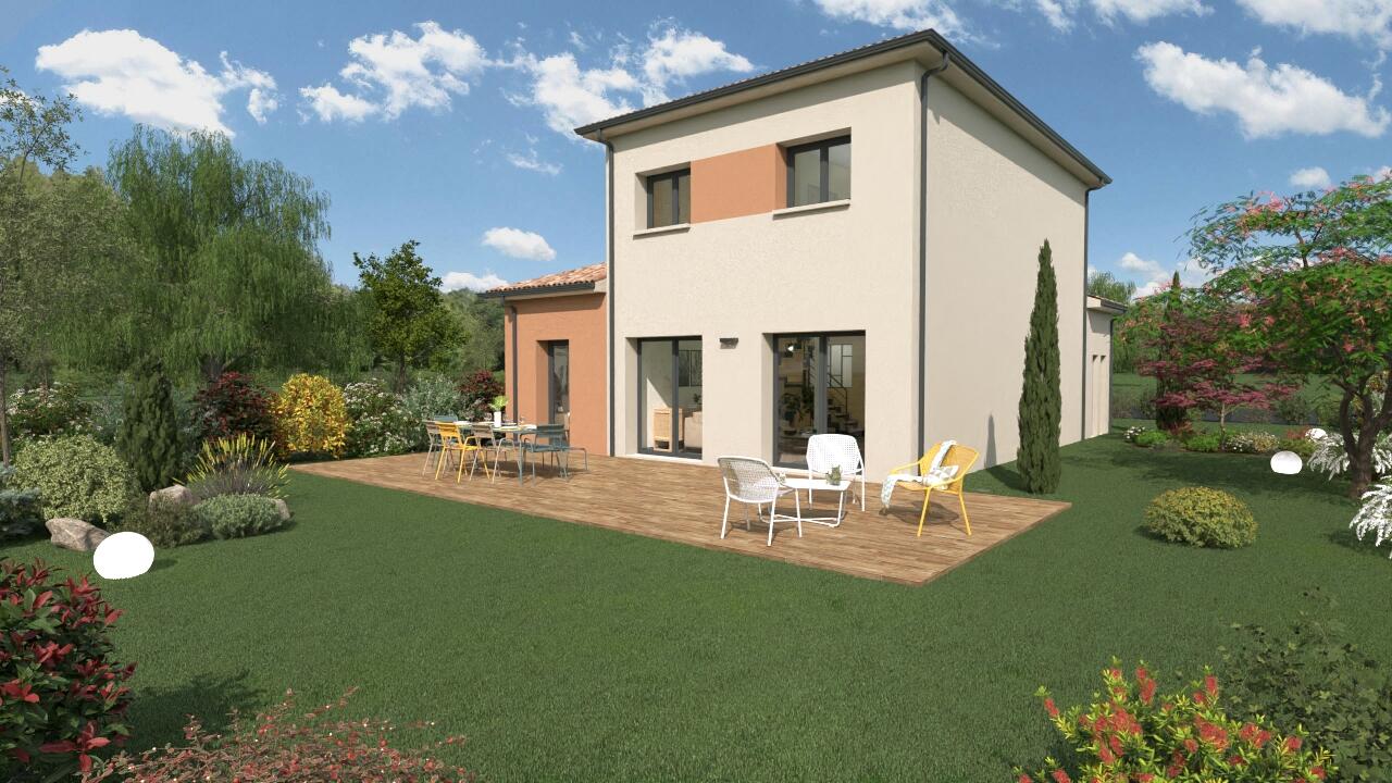 Notre inspiration pour ce terrain : la maison Néora. Cette maison se compose d'une entrée donnant sur la pièce à vivre avec cuisine ouverte, d'une chambre parentale au RDC et 3 autres chambres et SDB à l'étage, ainsi que d'un cellier et un garage.
