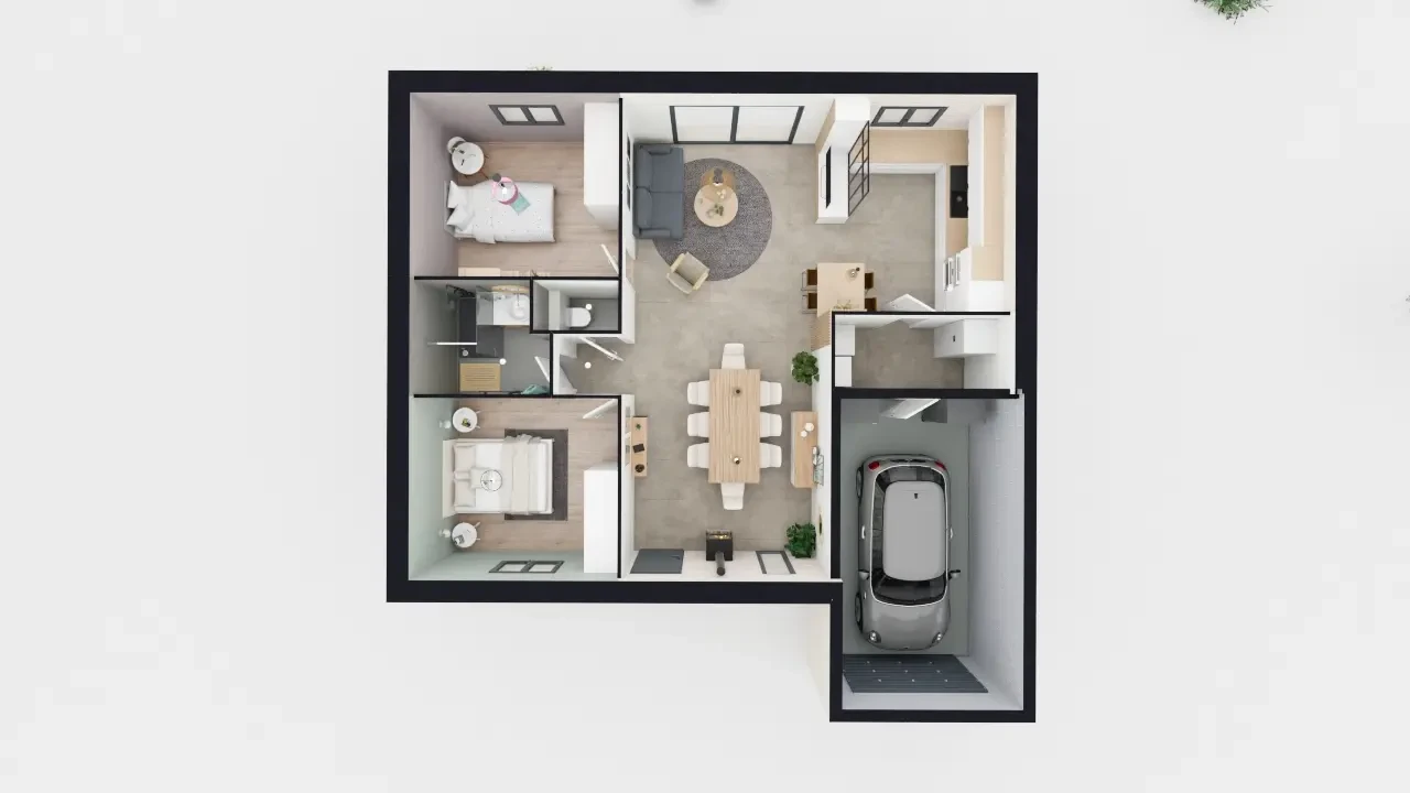 Profitez d’un cadre de vie agréable et d’une maison moderne aux prestations de qualité. Ce projet s’adapte à vos envies et vos besoins. Personnalisable des murs jusqu’au toit pour refléter au mieux votre projet de vie.