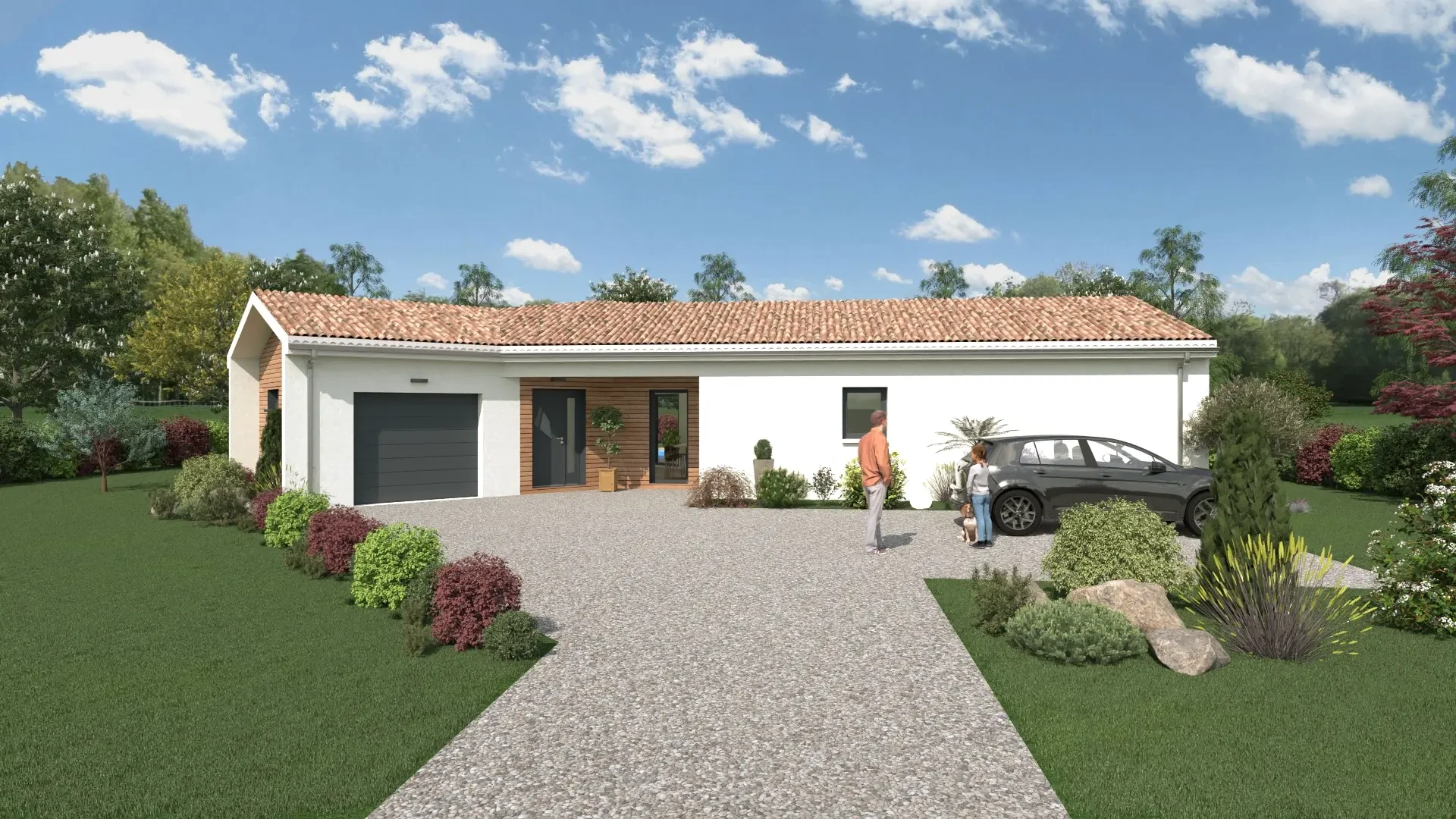 Construction maison ossature bois neuve de 3 chambres – Surface habitable 116m² + Garage 21m² – Cazan