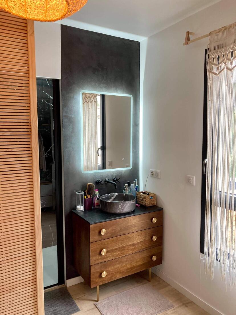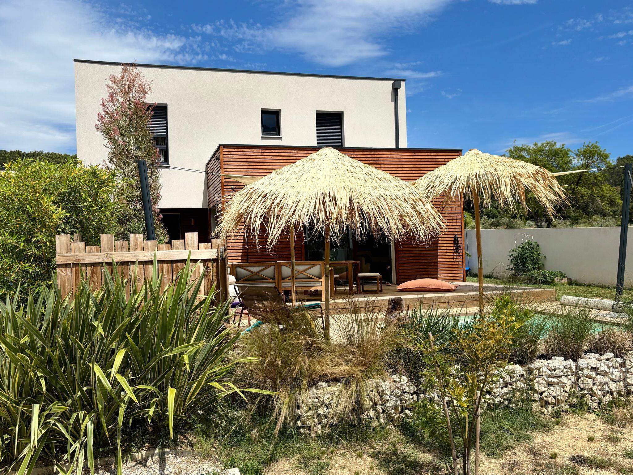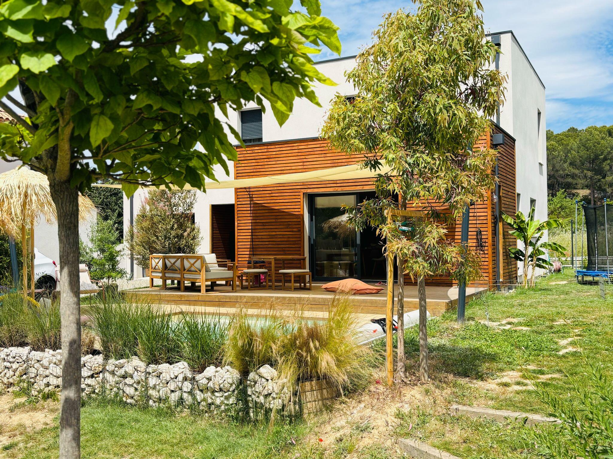 - Une terrasse en bambou généreuse, prolongée par une piscine adaptée au terrain, pour profiter pleinement de l’extérieur et du climat provençal.