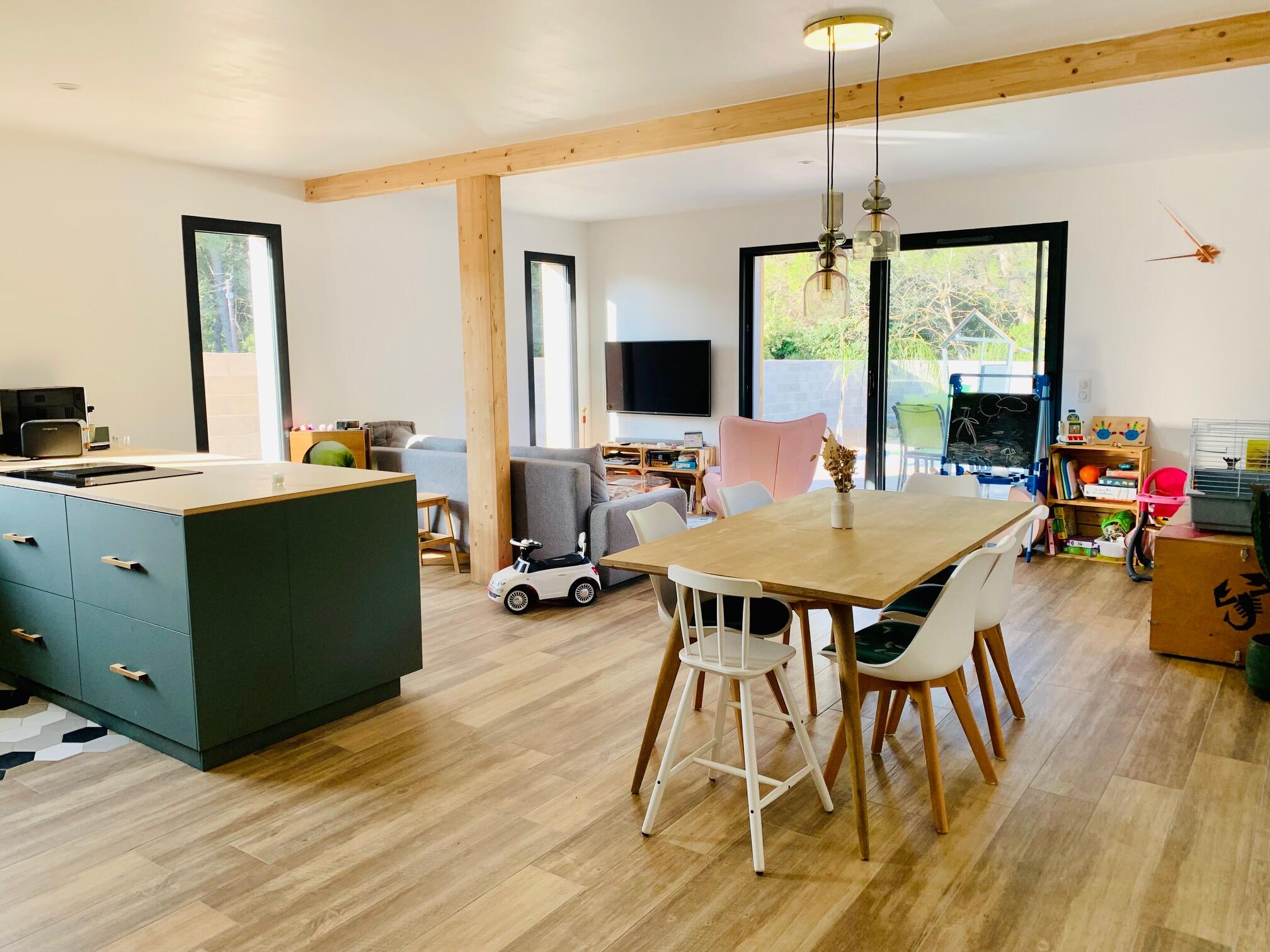- Un espace de vie ouvert, lumineux et fonctionnel, idéal pour les moments en famille ou entre amis.