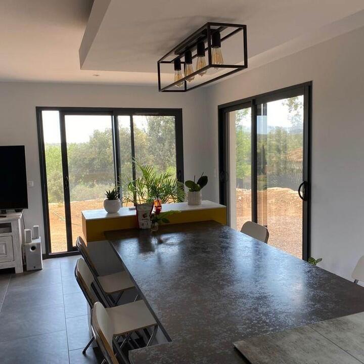Située à Besse-sur-Issole, au cœur du Var, cette villa écoresponsable de plain-pied allie harmonieusement design contemporain et respect de l’environnement. Conçue et construite par nos soins, cette maison de 108m² représente l'excellence de l'art de bâtir dans le respect des principes écologiques, avec une ossature bois qui garantit une isolation thermique optimale et une empreinte carbone réduite.